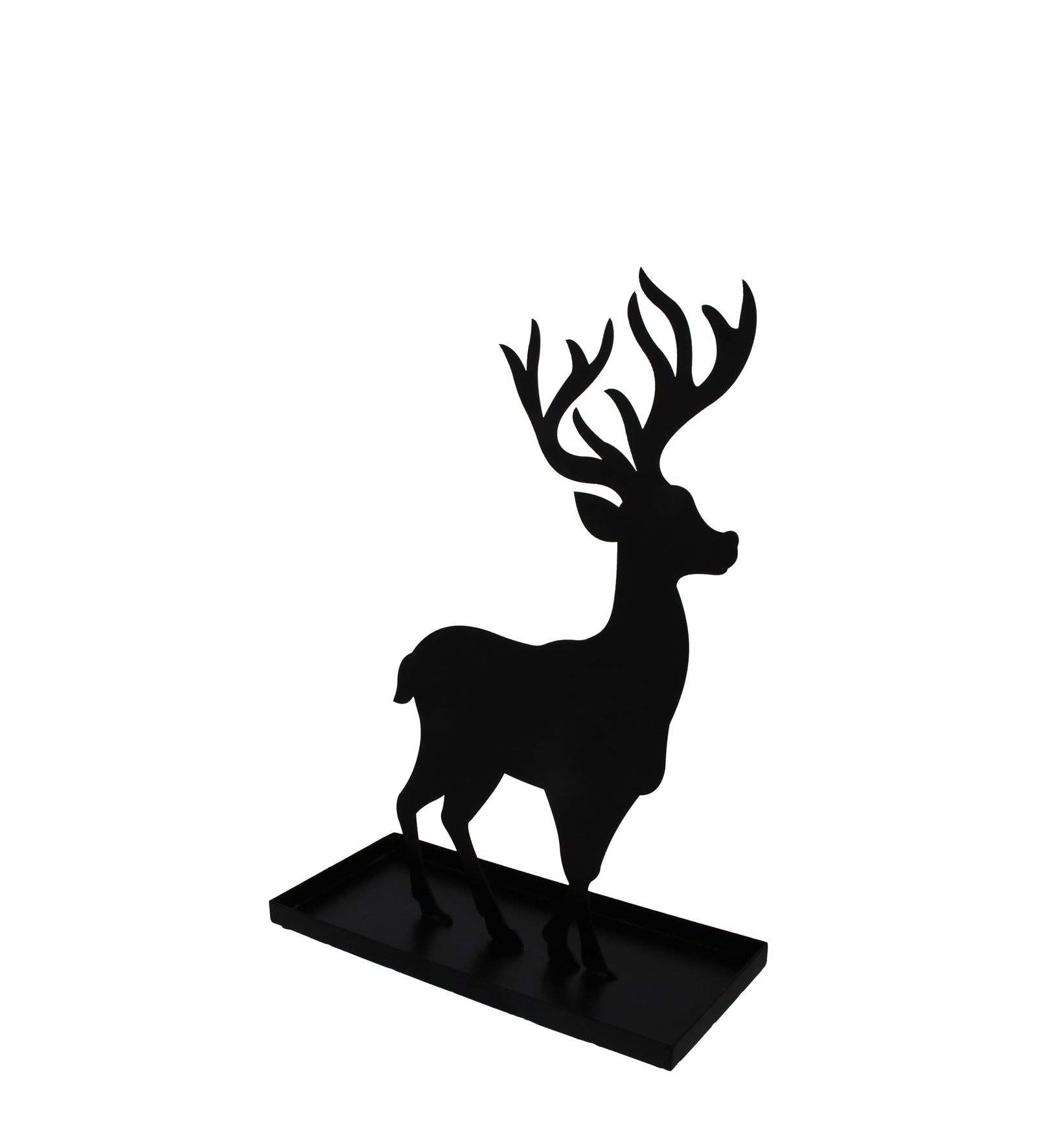 Dieser schwarze Metall-Hirsch Elvor bringt tierisch gute Laune ins Zuhause! Er steht in einer Schale, die du nach Herzenslust dekorieren kannst – perfekt für saisonale Deko oder kreative Akzente. Ob mit Moos, Kerzen oder bunten Kugeln – Elvor macht deine Einrichtung zum Hingucker mit ganz viel Charme.
