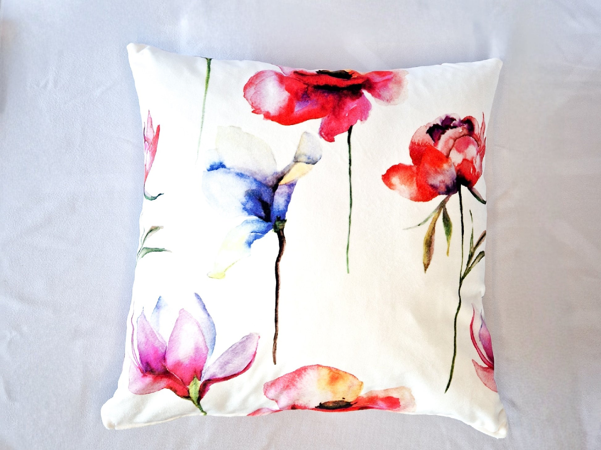 Mit dem Kissen Blumen Aquarell bringen Sie frischen Wind und Farbe in Ihre Einrichtung. Die wunderschönen Blumen im Aquarellstil verleihen jedem Raum eine verspielte Note.