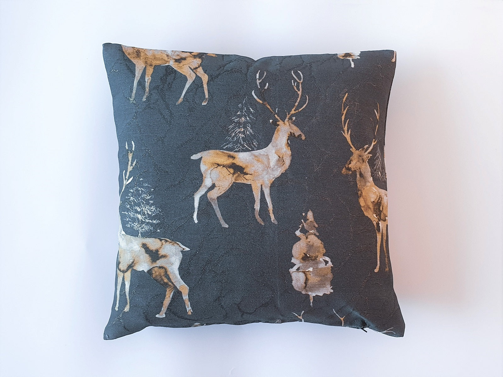 Das Dekokissen mit winterlichem Hirschmotiv ist nicht nur ein Hingucker, sondern auch perfekt für entspannte Stunden auf dem Sofa.