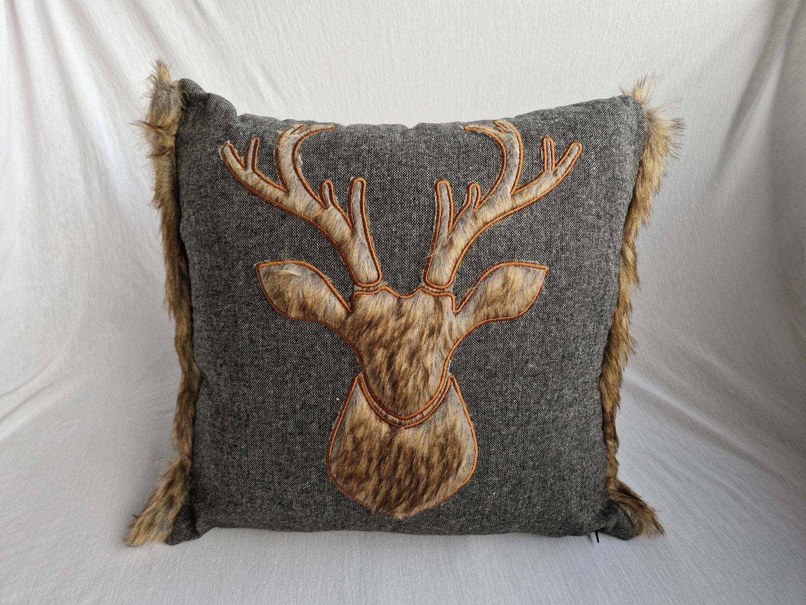 50cmx50cm, Vorderseite mit Hirschmotiv aus Kunstfell