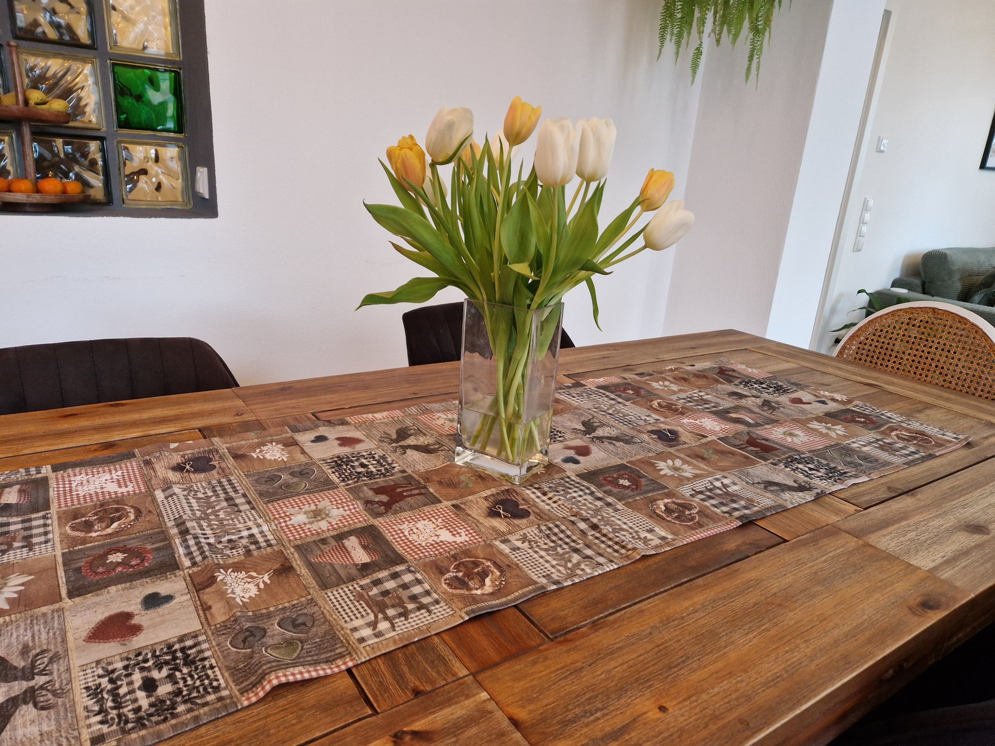 Sorgen Sie für eine alpine Atmosphäre auf Ihrem Tisch mit dem Tischläufer Zillertal. Im traditionellen Stil gehalten, bringt sie gemütlichen Charme und rustikales Flair in Ihr Zuhause. Perfekt für gesellige Abende mit Freunden oder für eine gemütliche Mahlzeit.